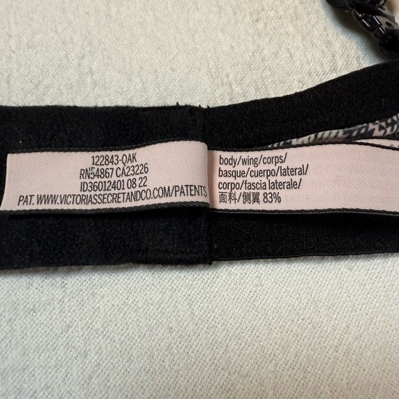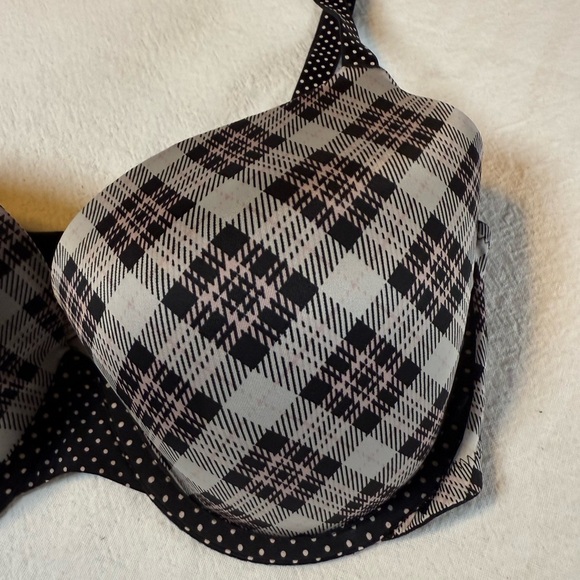 Experience the perfect blend of style and support with this Victoria's Secret bra, featuring a chic black and pink plaid design. The full-coverage molded cups and underwire provide excellent support, while the adjustable straps ensure a comfortable fit. A touch of pink polkadot trim adds a sophisticated finish to this intimate essential.