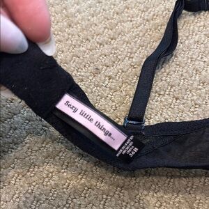 Victoria's Secret Black and Pink Underwire Bra with Intricate Design