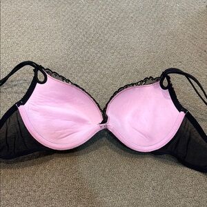 Experience the perfect blend of style and support with this Victoria's Secret bra, featuring a striking black and pink color palette. The underwire and molded cups offer exceptional shaping, while the intricate design adds a touch of elegance to your intimate collection.