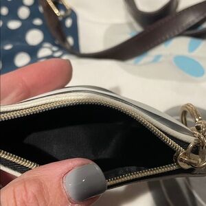 Victoria's Secret Black and White Striped Pouch with Pink Accent