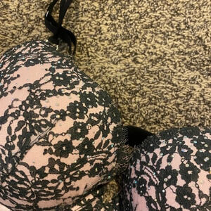 Victoria’s Secret Bling Rhinestone Lace Black & Pink Push-Up Bra