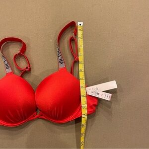 Victoria’s Secret Bling Rhinestone Logo Straps Push Up Bikini Top Red Sz 34B NWT