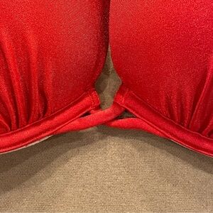 Victoria’s Secret Bling Rhinestone Logo Straps Push Up Bikini Top Red Sz 34B NWT