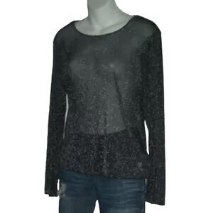 Victorias Secret Blouse Black Sheer Cyberpunk Futuristic Mesh Goth alt egirl y2k