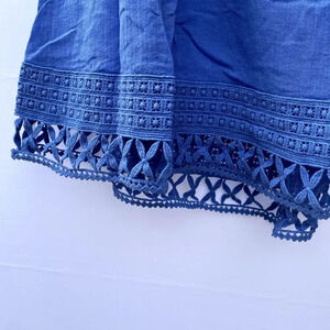 Victoria's Secret Blue 100% Cotton Bohemian Lace Trim Flowy Beach Shift Dress