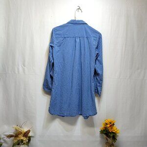 Victorias Secret Blue Gingham Med Button-Up Shirt Dress Long Sleeve Roll Up Tabs