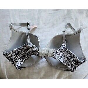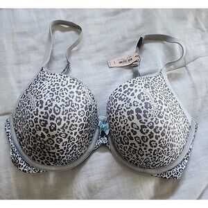 Victoria's Secret Blue Gray Animal Print Padded Bra 34DD Underwire Convertible