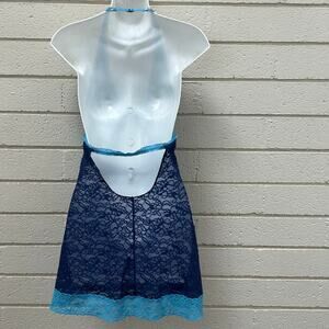 Victoria’s Secret Blue Lacie Halter Lingerie size M. Approx. measurements 14” chest flat across, 31 “ length.