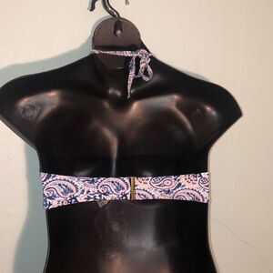 Retro style clamshell bikini top with halter tie strap. Size 34c in great preowned condition