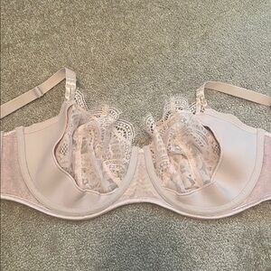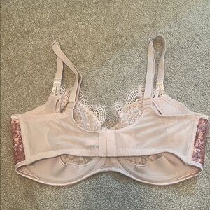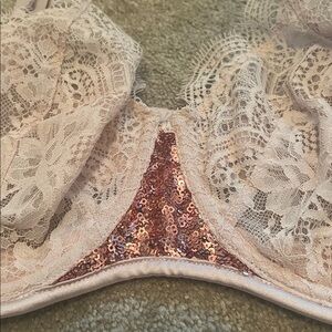 Chic lace design with delicate blush tones. Offers both elegance and comfort.