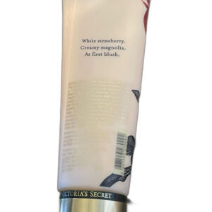 Victoria's Secret Blushing Berry Magnolia lotion with floral design. Features red and black accents.