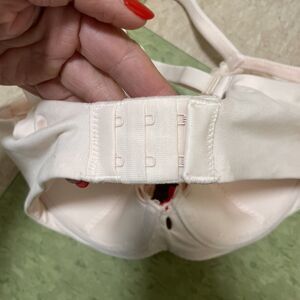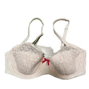 In excellent shape. Worn just a handful of times this chest is not the bra for me. Beautiful lighter pink color with a contrasting bow in the center double lined with lace and a Demi cup. Adjustable straps that can be converted. No issues, clean and ready for the next owner from a very well-maintained closet