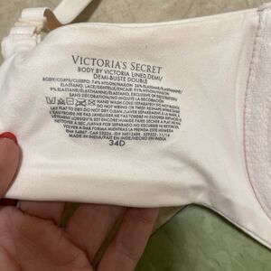 Victoria’s Secret Body By Victoria Lined Demi Bra Pink Lace Balconette 34D EUC