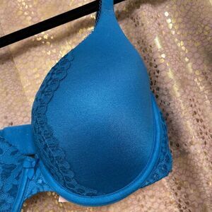 Great gently used condition, no major flaws. Smoke and pet free home. Pretty tealish blue color. These are great comfortable bras suitable for everyday wear! Size 34D. Little bit of padding.