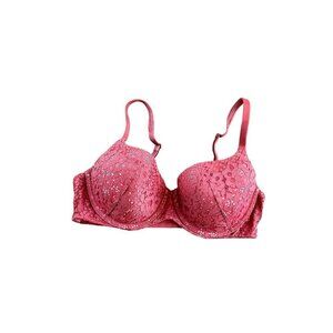 Victoria's Secret Body By Victoria Red/Pink Lace Lightly Padded Bra Size 36D
