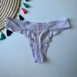 Victoria's Secret Body By Victoria Shimmer Lace-Front Thong Panty Lavender XS NEW