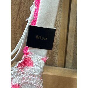 A supportive and stylish bra featuring white and pink floral lace, with lined perfect coverage for comfort and elegance. Brand new with tags.