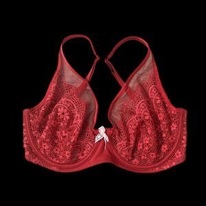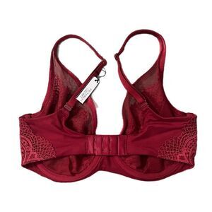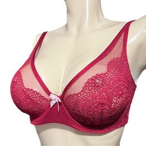 Victorias Secret Body Unlined Demi Crochet Lace with mesh bra 32DDD maroon