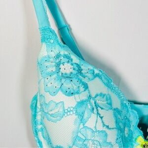 Tags: victoria’s secret body by victoria perfect coverage lace bra turquoise aqua lingerie feminine chic dainty romanticcore coquette underwear underwire support full coverage lace floral bow charm pastel aesthetic delicate intimatewear satin