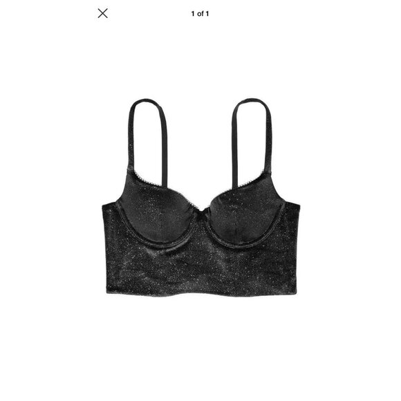 Elevate your lingerie collection with this stunning Victoria's Secret bra. Featuring a lined demi design in luxurious black sparkle velvet, it offers both comfort and style. Perfect for any occasion.