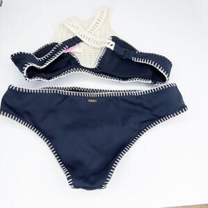 Victoria's Secret Boho Black & Cream Crochet Bikini Set Size Medium