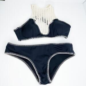 Victoria's Secret Boho Black & Cream Crochet Bikini Set Size Medium