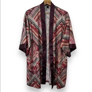 Victoria's Secret Boho Satin Kimono Bath Robe Faux Patchwork Maroon Women's XS/S