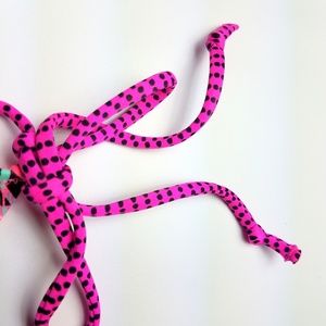Classic string bikini with ties at the hip. Cute contrasting ties with hot pink and black polka dot print. Center of back is gently gathered for a better fit.