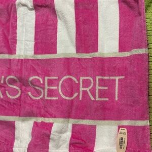 Vibrant towel with bold pink and white stripes. Ideal for beach days.