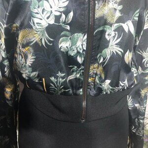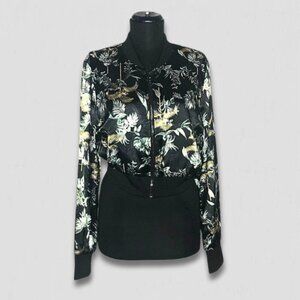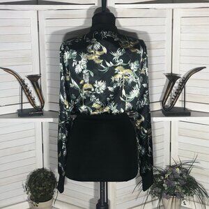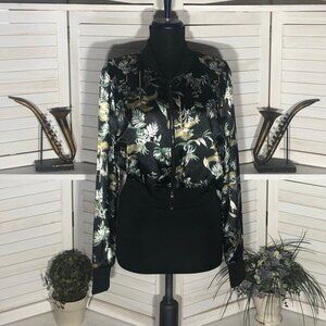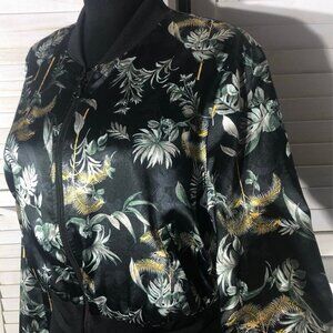 Victoria’s Secret Bomber Cropped Jacket Luxe Palm Satin Floral Silky Black Sz S