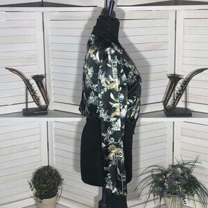 This luxurious Victoria’s Secret satin bomber jacket features a tropical palm floral print. With a silky finish, cropped cut, and fully lined interior, it’s a statement piece that strikes a balance between comfort and glamour.