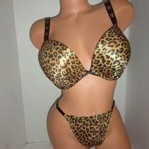 Victoria's Secret Bombshell +2 cups Leopard Shine Strap Bra & V-String Set