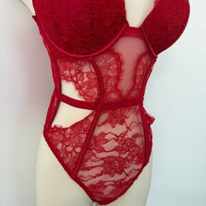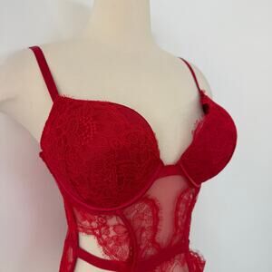 Victoria's Secret Bombshell Lace Corset Bodysuit Push Up Lingerie Red L