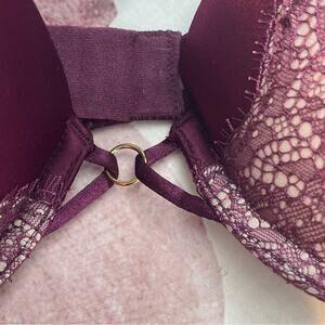 Turn heads with the Victoria's Secret Bombshell Plunge Bra, designed to elevate your style and confidence. In a stunning deep royal purple with delicate lace and strappy details, this bra is both bold and feminine. Featuring supportive underwire, adjustable straps, and gold accents, it combines luxury with functionality. The two-hook closure with three settings ensures a comfortable, customizable fit. Size 32C, perfect for adding a touch of glamour to your lingerie collection.
