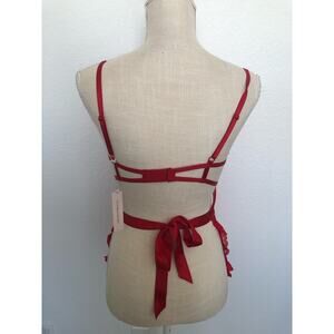 This piece is sexy and stunning. It comes in a can't-miss red. It is a lace two-piece set. The teddy apron has intersecting straps that contrast the delicate lace. Flirty cutouts can be found throughout. It features the Bombshell style bra, which is padded and has an underwire to give the ultimate lift. It has adjustable straps and a gorgeous ribbon tie in the back. The back is open and has a hook-and-eye closure for the bust. Matching red lace thong. New with tags.