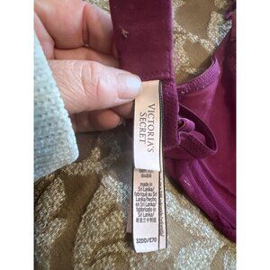 Victoria's Secret Bra 32DD Unlined Demi Velvet Lace Purple