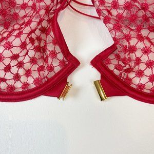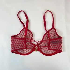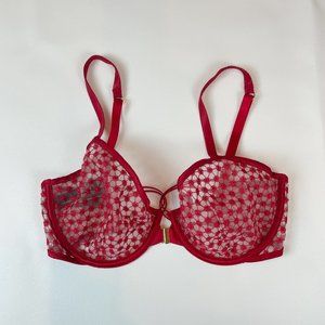 Victoria's Secret Bra Unlined Demi Red Starburst Front Closure.