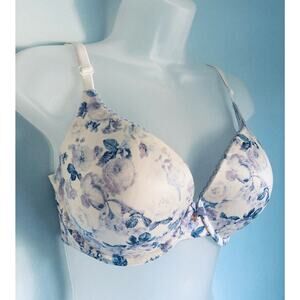 Victoria's Secret bra in size 32DDD in a beautiful white with blue and purple flowers. Is from the Body by Victoria collection and is the Perfect Shape style. Provides full coverage with padding for slight push up. Straps are padded for comfort and are adjustable, can also be converted to cross back. In excellent preowned condition, looks new. Material is memory foam so contours to your shape and is so soft. See pictures for condition. Offers and questions are welcome! Smoke free home.