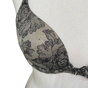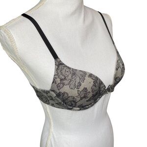 Victorias Secret Bra 34A Lace Demi Padded Push Up Rhinestones Sparkle Black