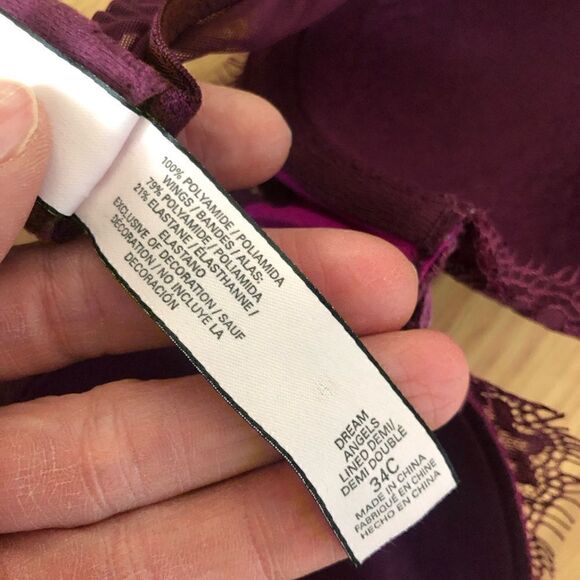 Victoria's Secret Bra 34C Dream Angels Lined Demi Lace Rhinestone Wine Underwire
