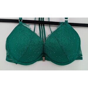 Victoria's Secret Bra 34C Green Lace Push Up Very Sexy Racerback-READ