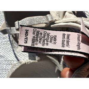 Victoria’s Secret Bra 34D Ivory Floral Lace Shimmer Dream Angels Demi Womens