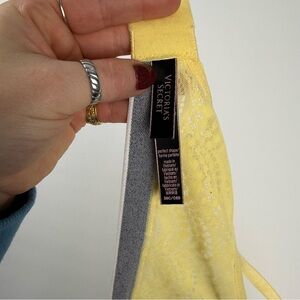 • Yellow Lace Bra: Victoria’s Secret Perfect Shape Bra with lace overlay and elastic logo band