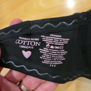 Black - Victoria's Secret Cotton Strapless Bra Size 32C. Grippy band. Underwire. No straps. Any straps you have can be added to make this a strapped bra.