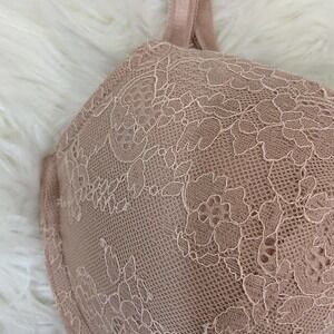 Victorias Secret Bra Push Up Womens 32DDD Nude Lined Demi Dream Angels Lace.