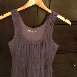 Comfortable, lightweight fabric with built in bra top. Cinching detail below bust and on shoulders. Great color! Like new condition, worn once. Smoke and pet free home.