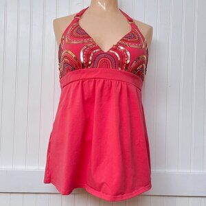 Victoria's Secret Bra Tops Coral Pink Halter Sequined V-Neck Tank Boho Large