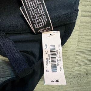 The product is a Victoria's Secret Bra in size 32DD with underwire support and a racerback design. It is a black T-shirt style bra with lining for added comfort and support. Ideal for women looking for a stylish and practical bra with a larger cup size, this bra provides a flattering fit and a reliable underwire construction for all-day comfort.