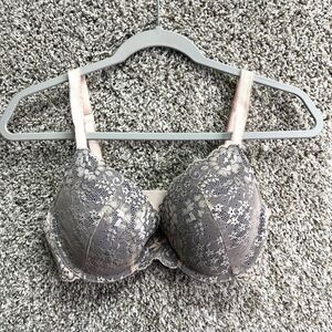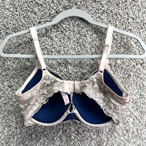 Excellent used Condition Women’s Victoria’s Secret Dream Angels Beige Lace Overlay Perfect Coverage Bra in Size 34D