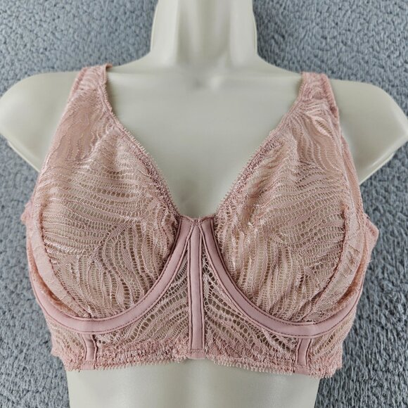 Victoria's Secret Bra Womens 34D Pink Lace Unlined Plunge Sheer Underwire Sexy
